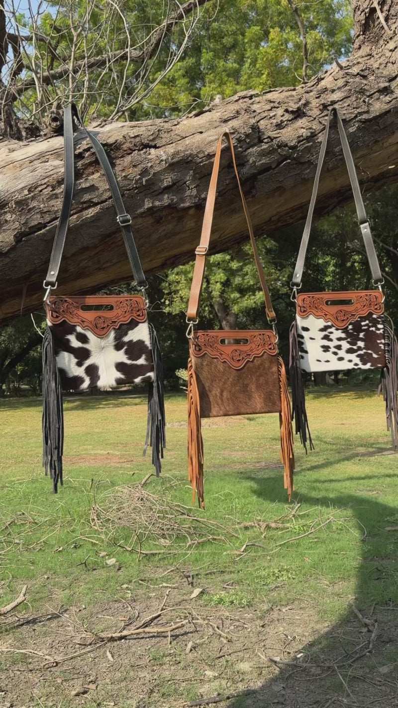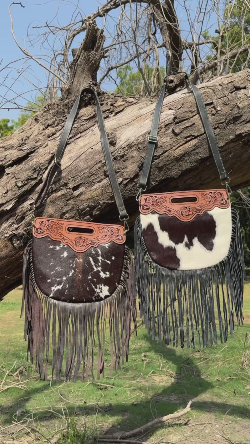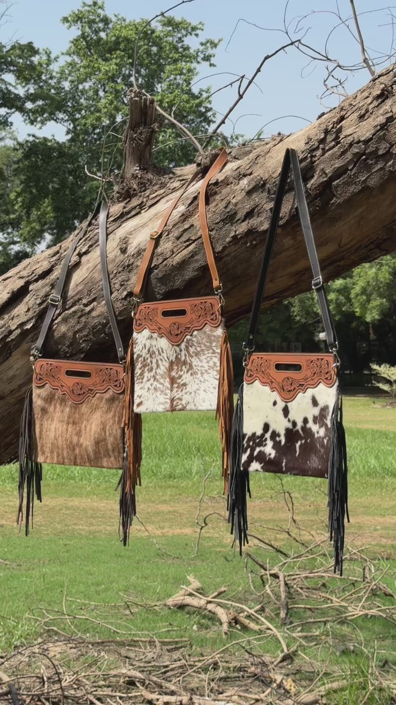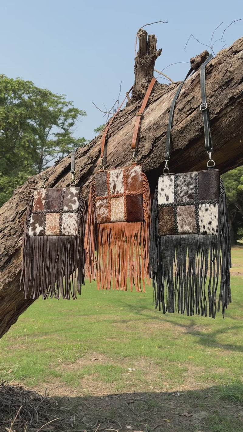 Cowhide Patchwork Fringe Crossbody Bag – Genuine Leather