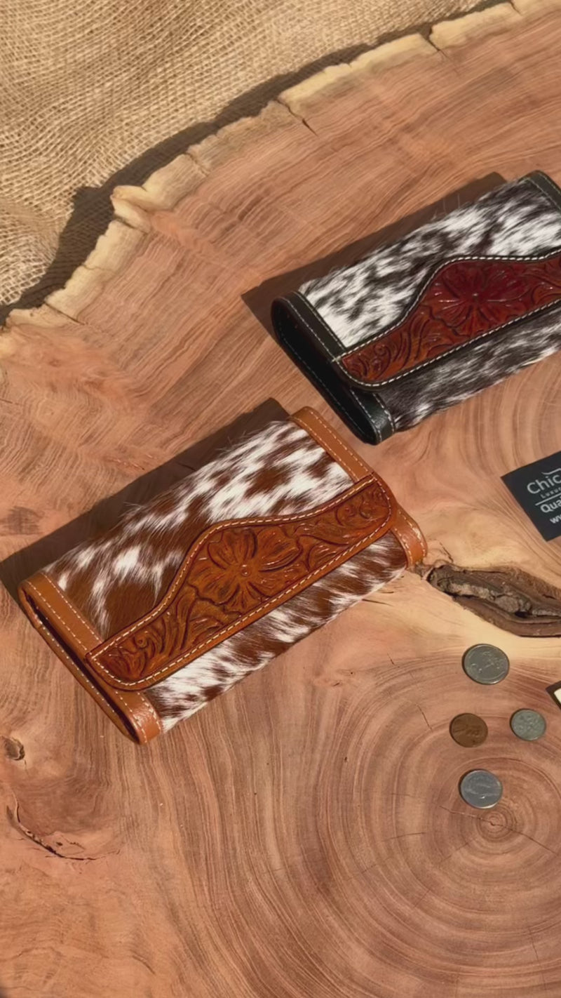 Handcrafted Embossed Cowhide Leather Long Wallet